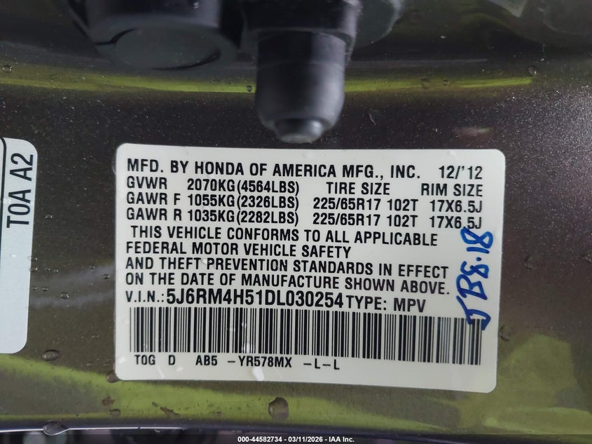 • 5J6RM4H51DL030254
