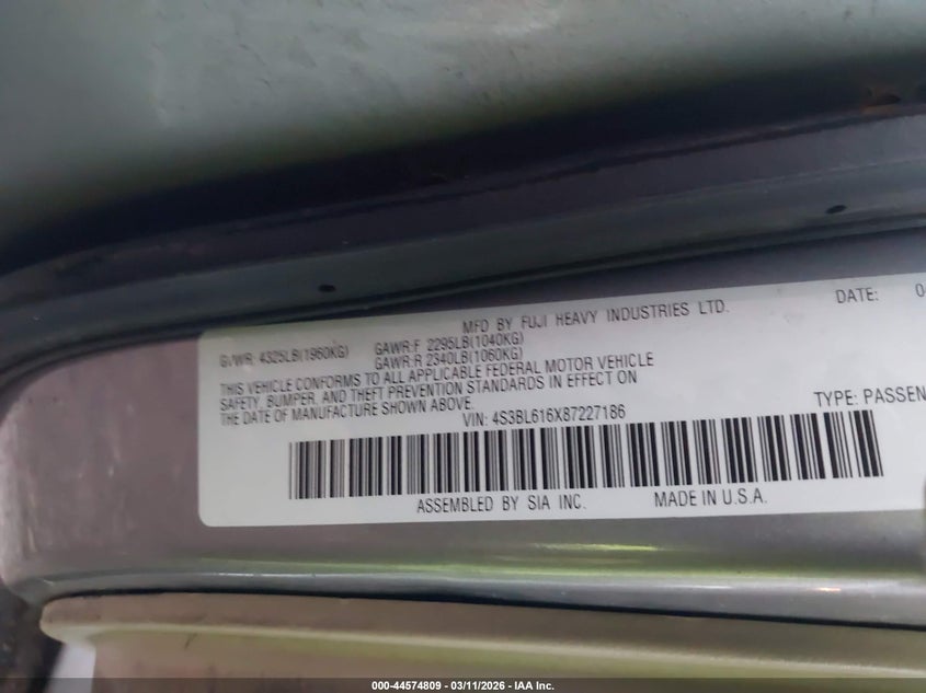 • 4S3BL616X87227186