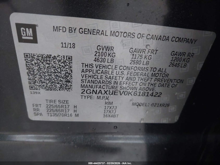 • 2GNAXUEV0K6181422