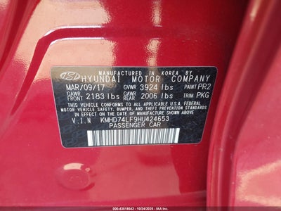 2017 HYUNDAI ELANTRA SE for Sale in Culpeper, VA