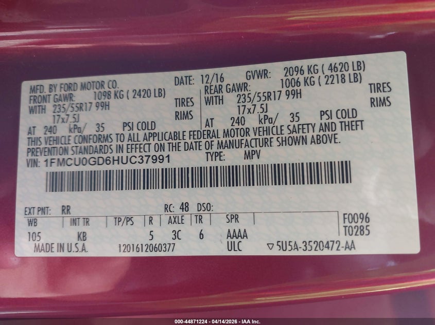 • 1FMCU0GD6HUC37991