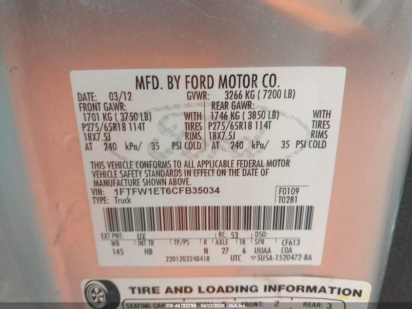 • 1FTFW1ET6CFB35034