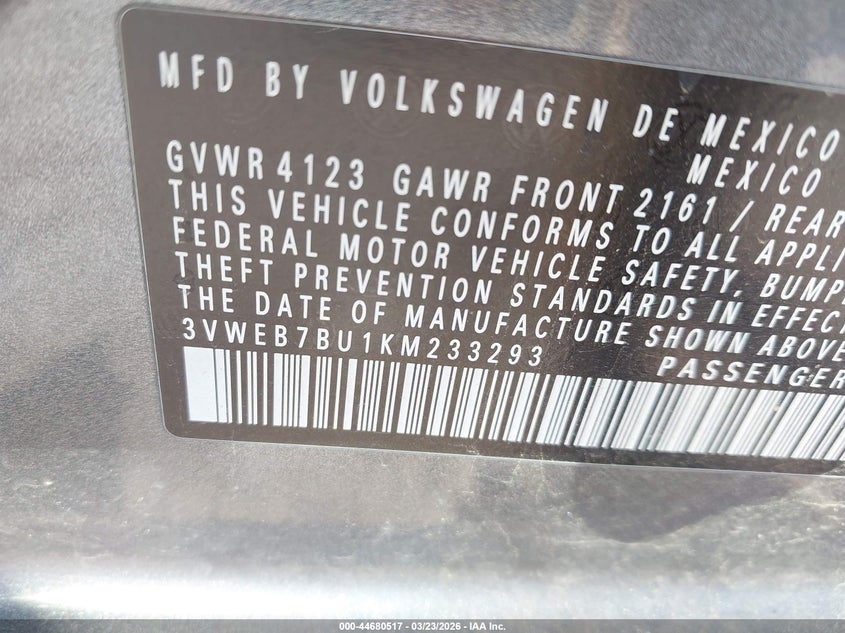 • 3VWEB7BU1KM233293