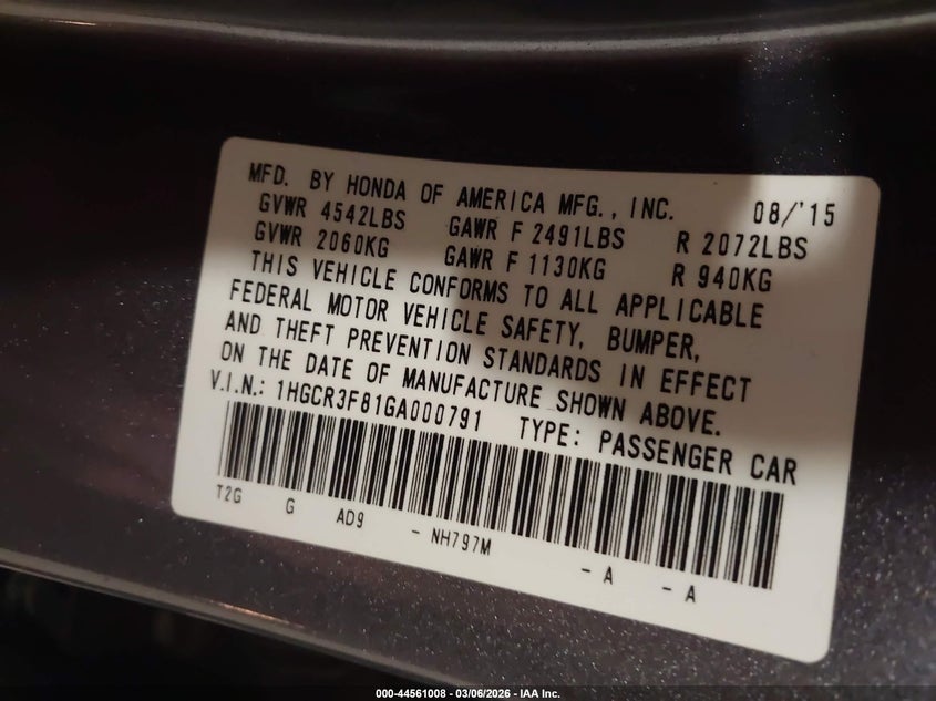 • 1HGCR3F81GA000791