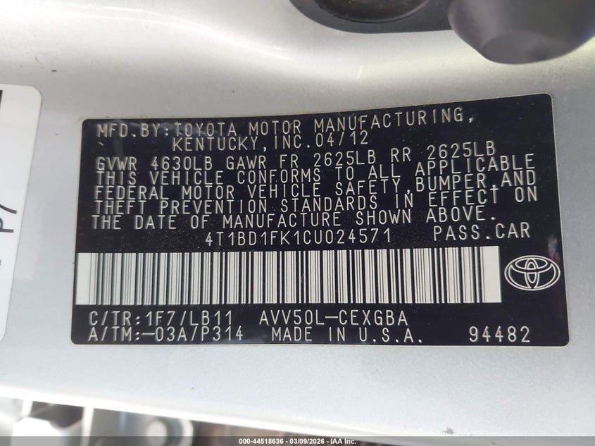 • 4T1BD1FK1CU024571