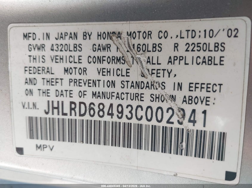• JHLRD68493C002941