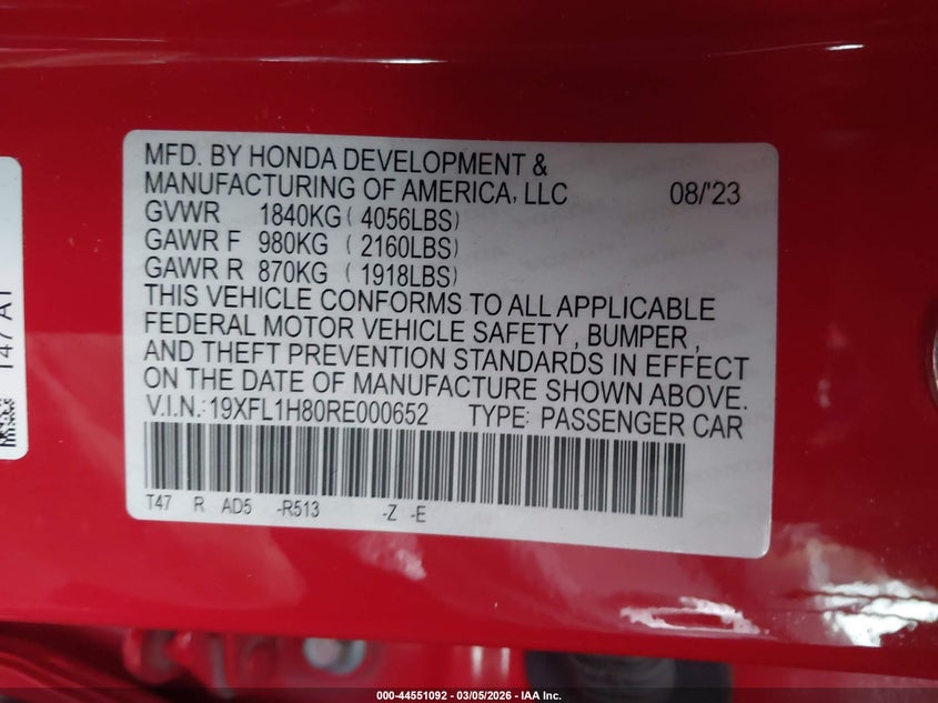 • 19XFL1H80RE000652