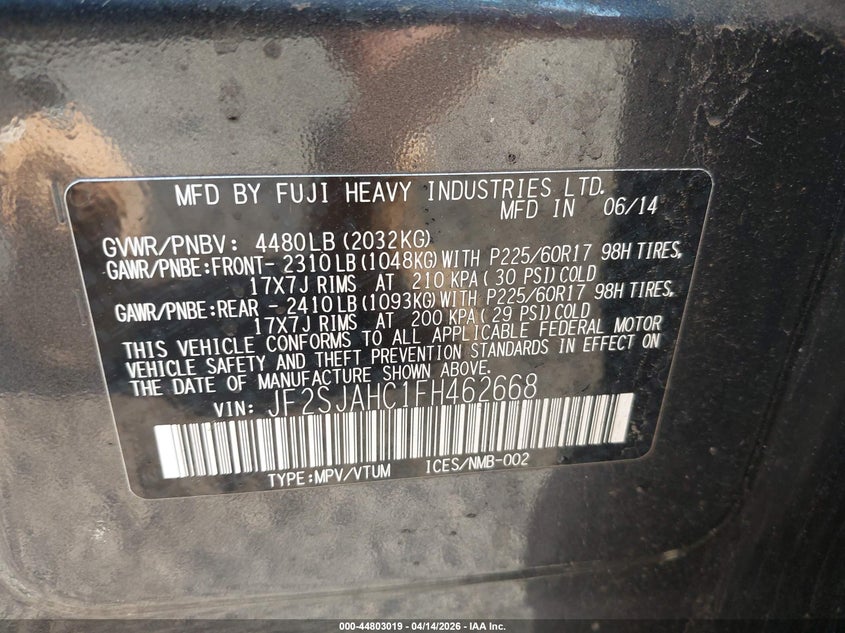 • JF2SJAHC1FH462668