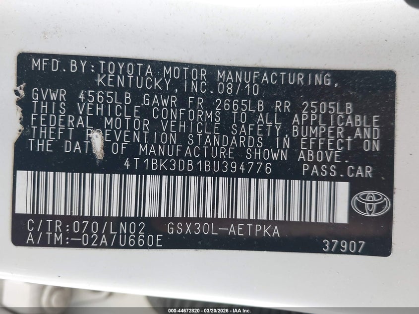 • 4T1BK3DB1BU394776