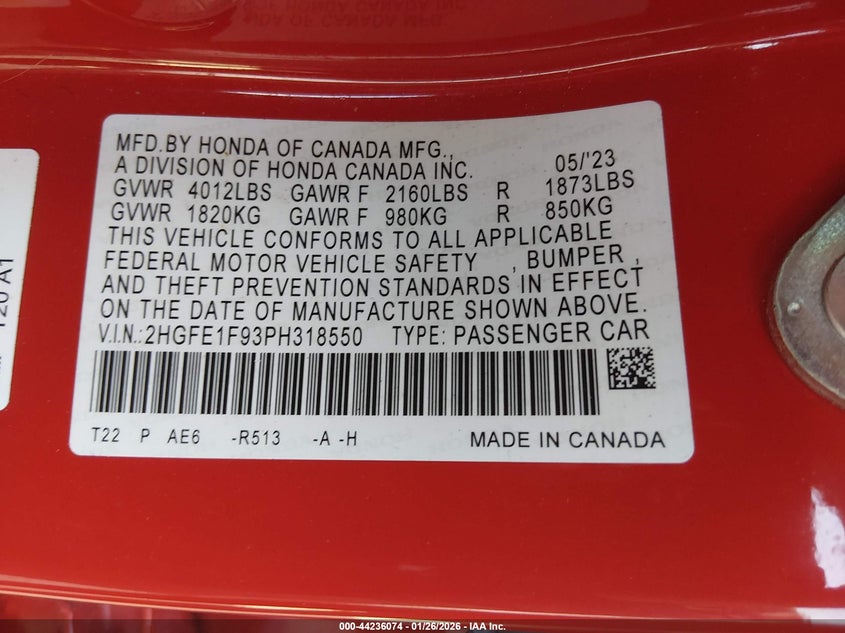 • 2HGFE1F93PH318550