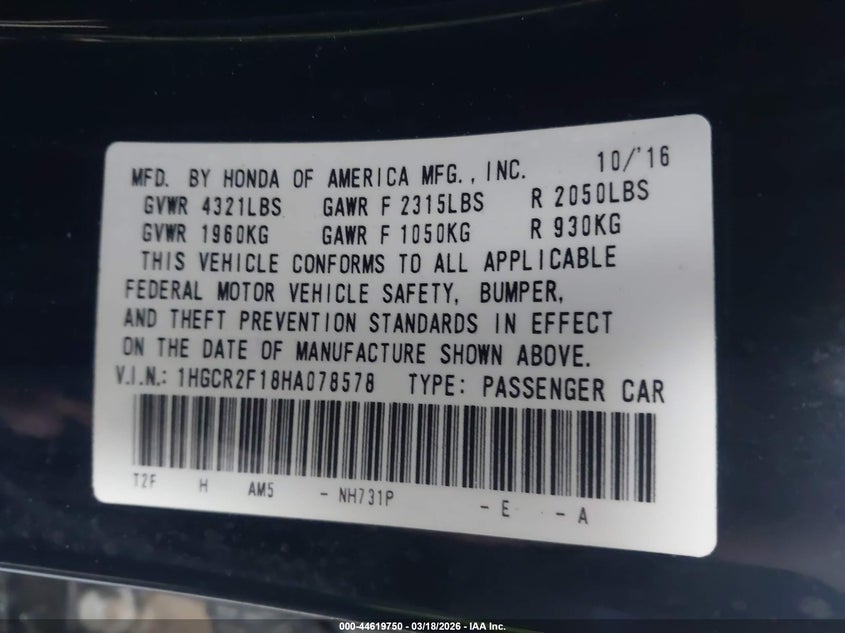 2017 HONDA ACCORD SPORT SE for Sale in Livingston, LA