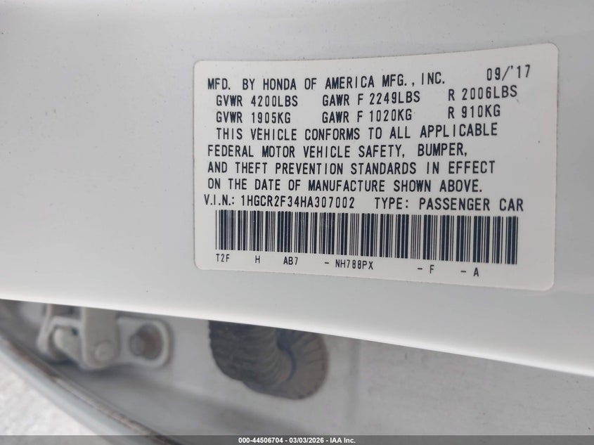 • 1HGCR2F34HA307002