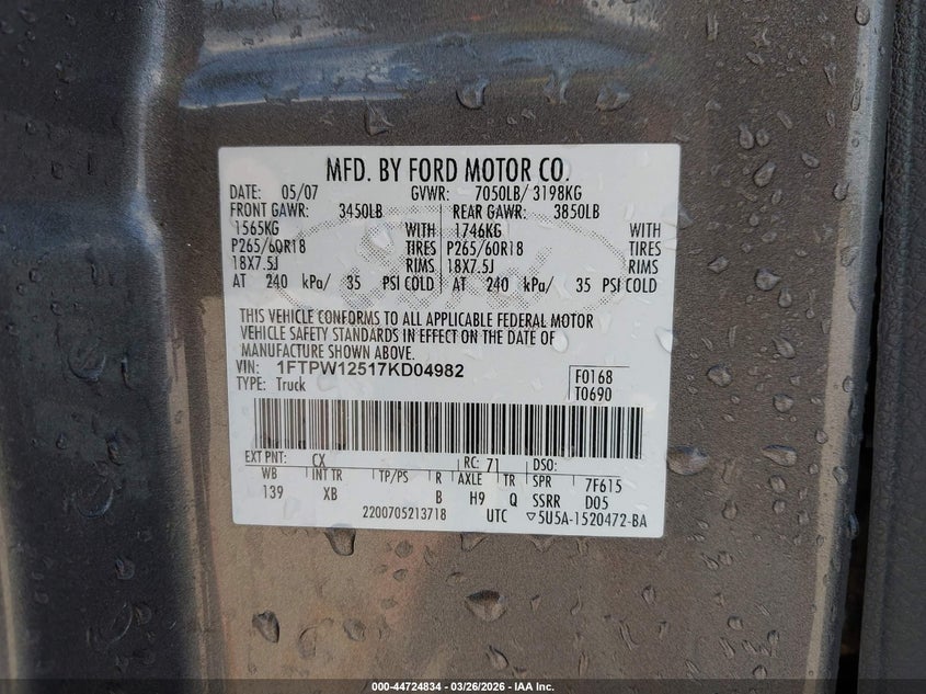 • 1FTPW12517KD04982