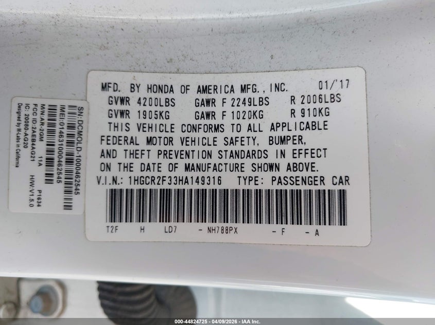 • 1HGCR2F33HA149316