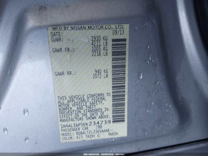 2014 NISSAN ALTIMA 2.5 SV for Sale in Sacramento West, None