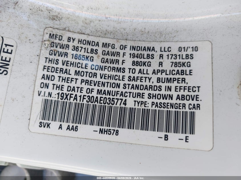 2010 HONDA CIVIC VP for Sale in Stockton, CA