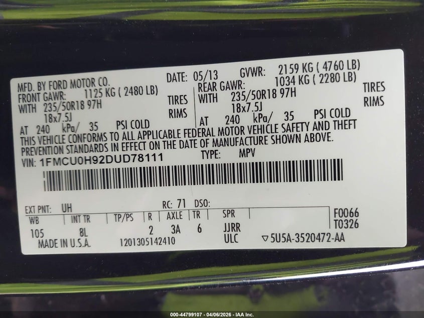 • 1FMCU0H92DUD78111