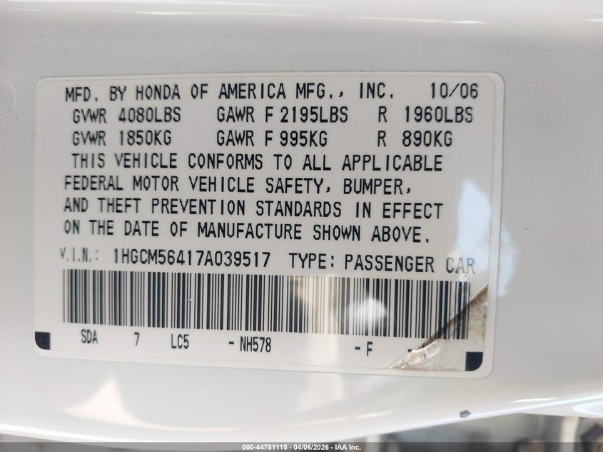 • 1HGCM56417A039517
