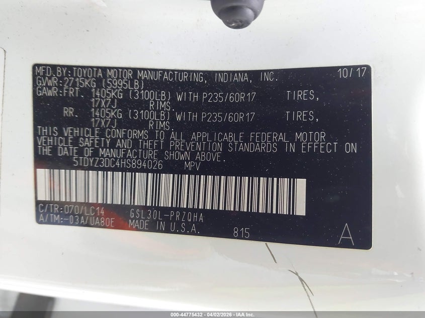 • 5TDYZ3DC4HS894026