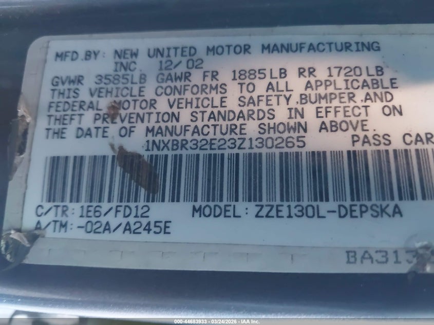 • 1NXBR32E23Z130265
