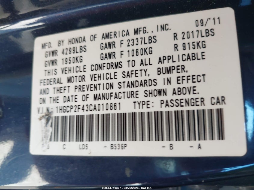 • 1HGCP2F43CA010861