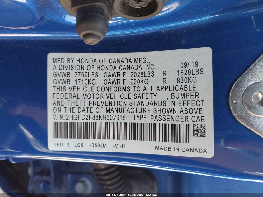 • 2HGFC2F88KH602915