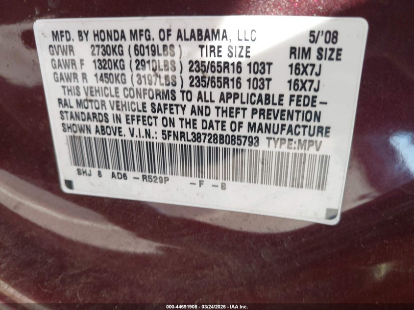 • 5FNRL38728B085793