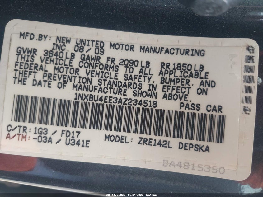 • 1NXBU4EE3AZ234518