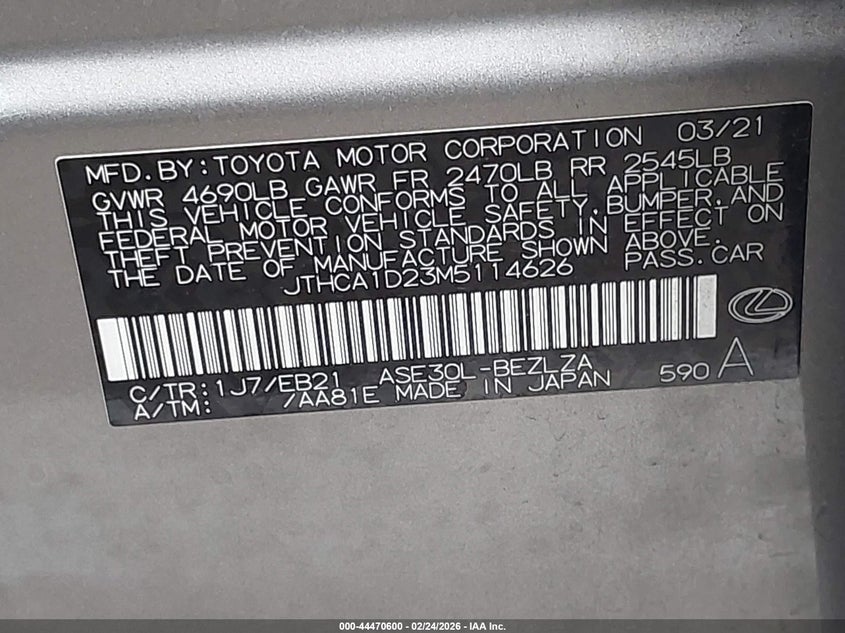 • JTHCA1D23M5114626