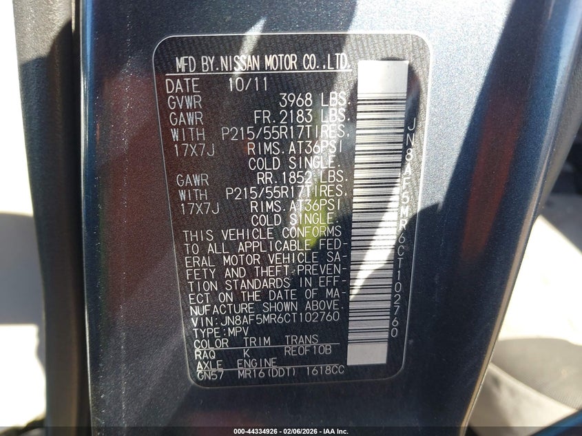 • JN8AF5MR6CT102760