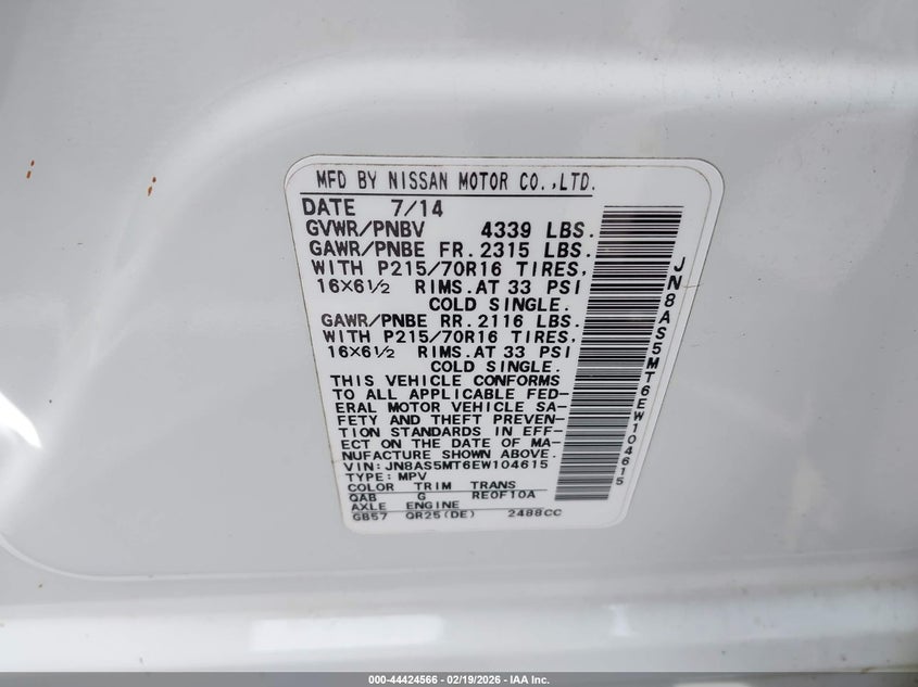 • JN8AS5MT6EW104615