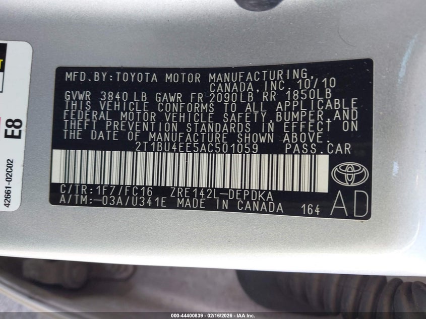 • 2T1BU4EE5AC501059