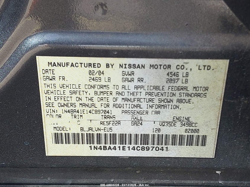 2004 NISSAN MAXIMA 3.5 SL for Sale in Pembroke Pines, FL