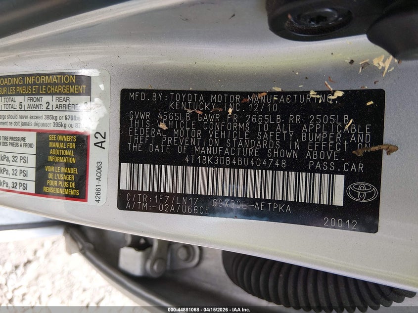• 4T1BK3DB4BU404748