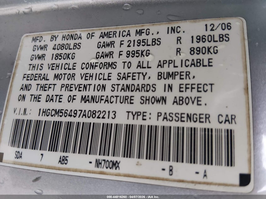 2007 HONDA ACCORD 2.4 LX for Sale in North Fort Myers, FL