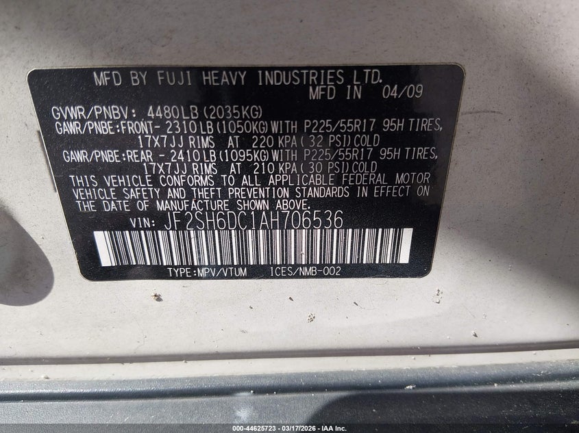• JF2SH6DC1AH706536