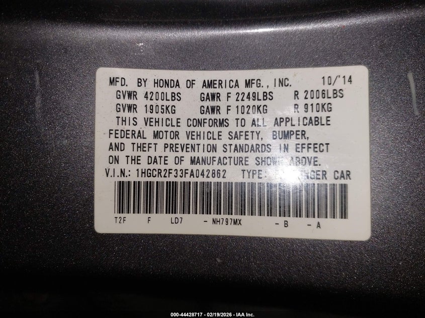 • 1HGCR2F33FA042862