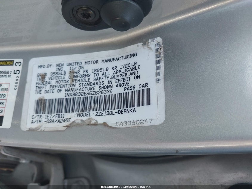 • 1NXBR32E86Z626336