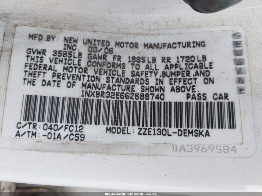 • 1NXBR32E66Z688740
