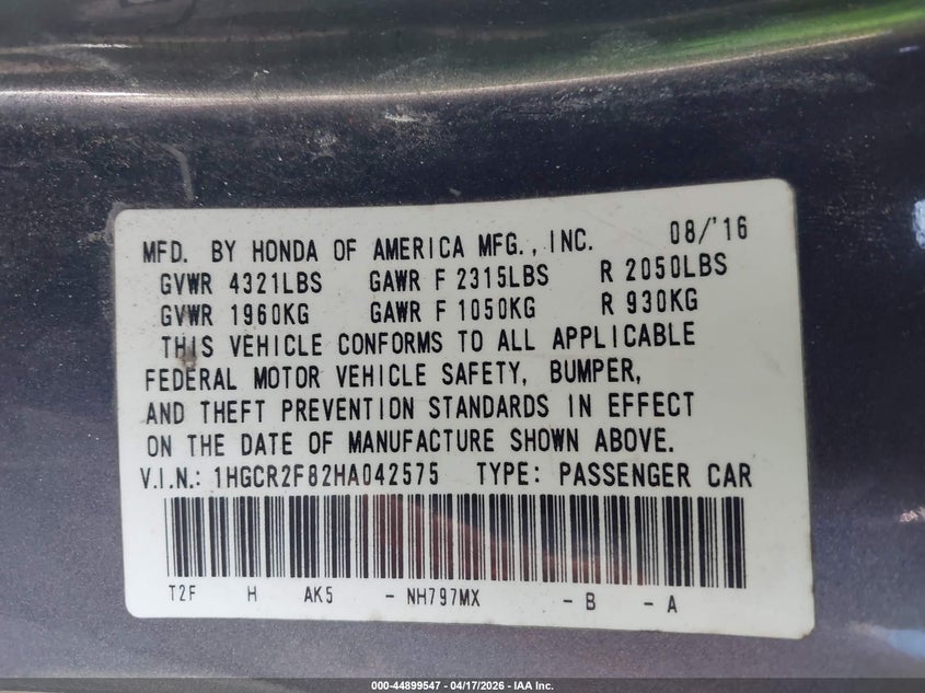 • 1HGCR2F82HA042575