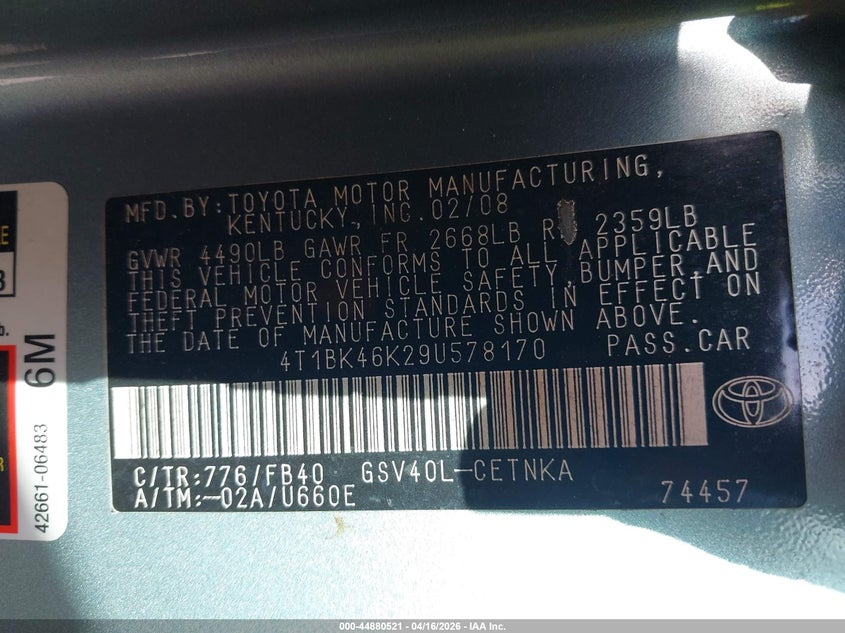 • 4T1BK46K29U578170