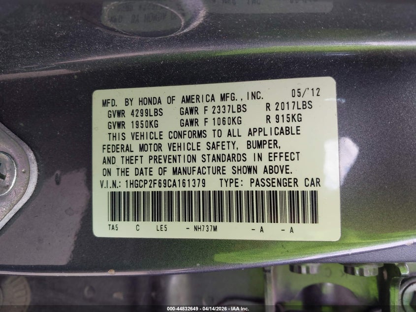 • 1HGCP2F69CA161379