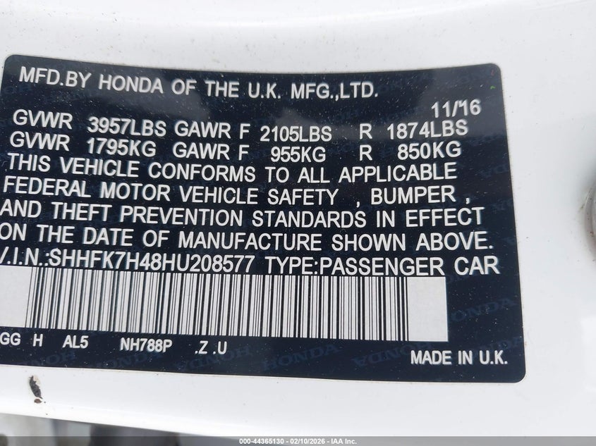 • SHHFK7H48HU208577
