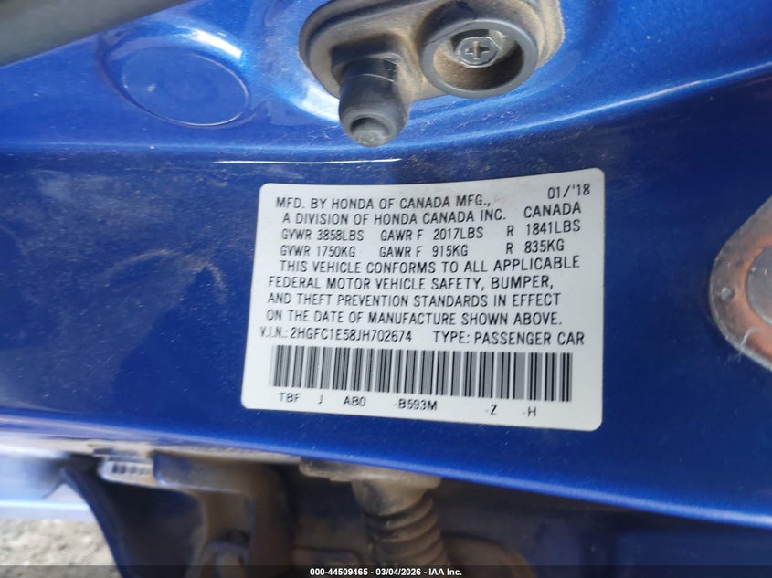 • 2HGFC1E58JH702674