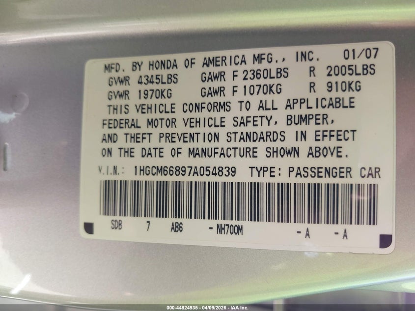• 1HGCM66897A054839