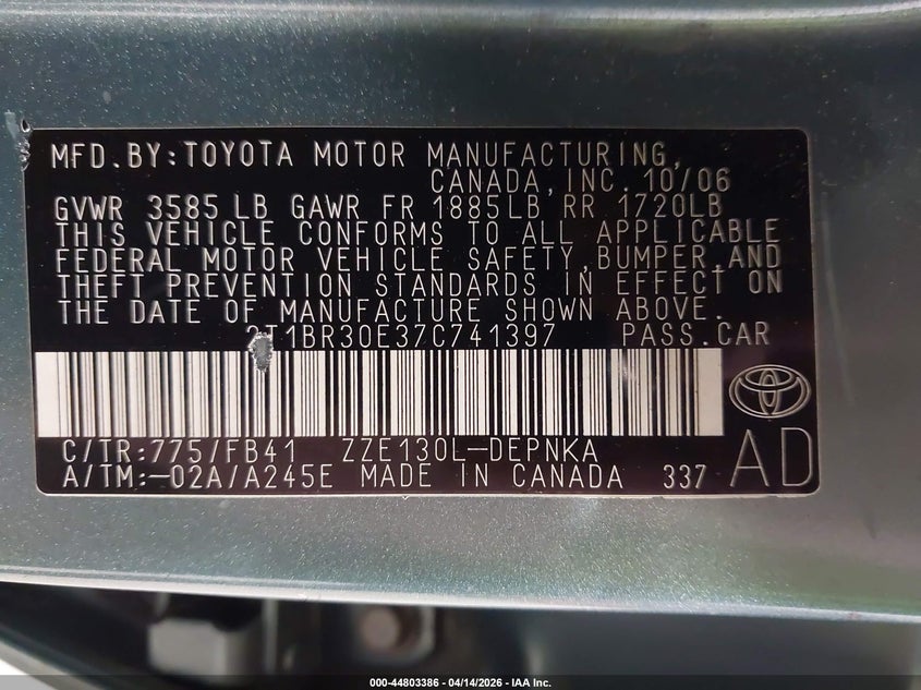 • 2T1BR30E37C741397