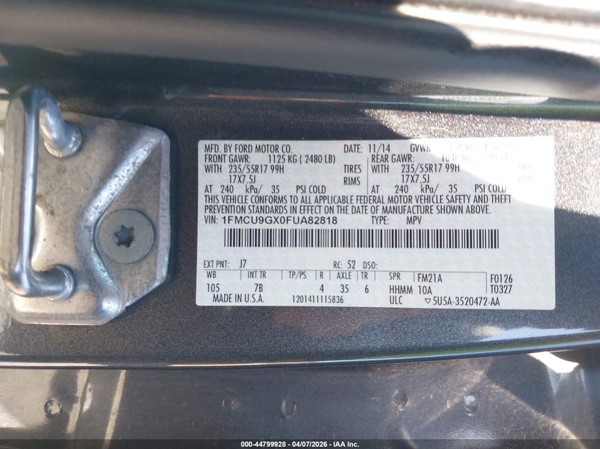 • 1FMCU9GX0FUA82818