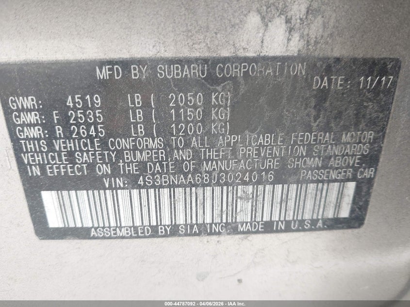 • 4S3BNAA68J3024016