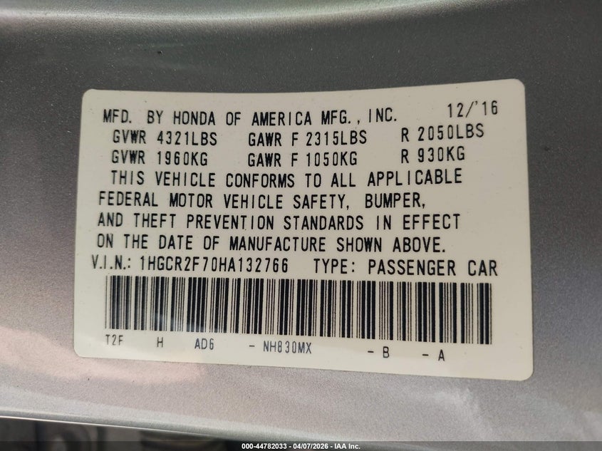 • 1HGCR2F70HA132766
