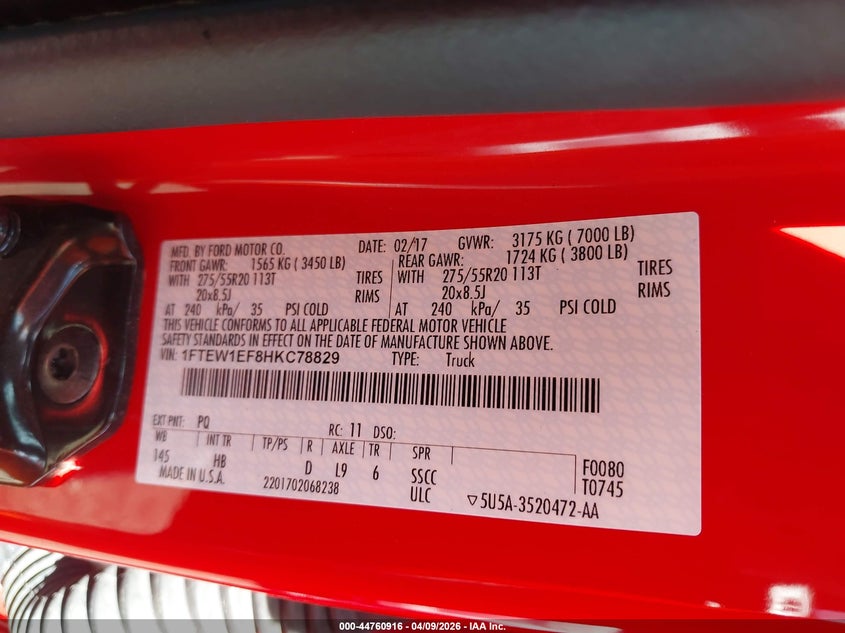 • 1FTEW1EF8HKC78829
